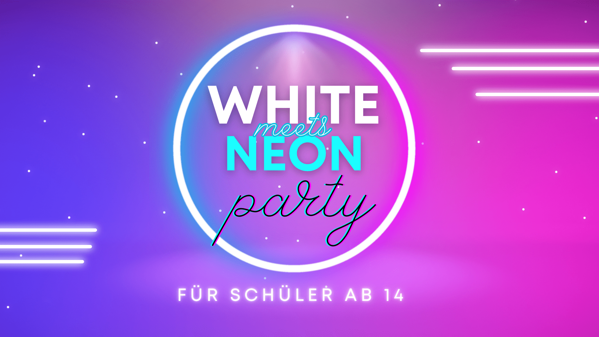 Am Samstag, 13. September erwartet euch eine Schüler-Party voller Beats, Schwarzlicht und leuchtender Outfits. Komm ganz in Weiß oder setz auf Neon-Details – und werde Teil des Glow! Um 19:00 Uhr geht es los und dann wird bis 22:00 Uhr gefeiert!